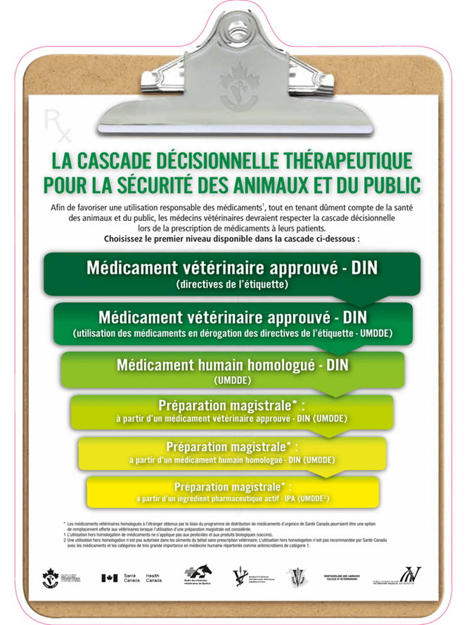 Ainsi au Canada, pour le traitement de première intention, si l’on se fie sur l’homologation, la classification des antibiotiques selon leur importance en médecine humaines et les sensibilités rapportées, les molécules choisies devraient être, les molécules de moindre importance devant être privilégiée en première intention: